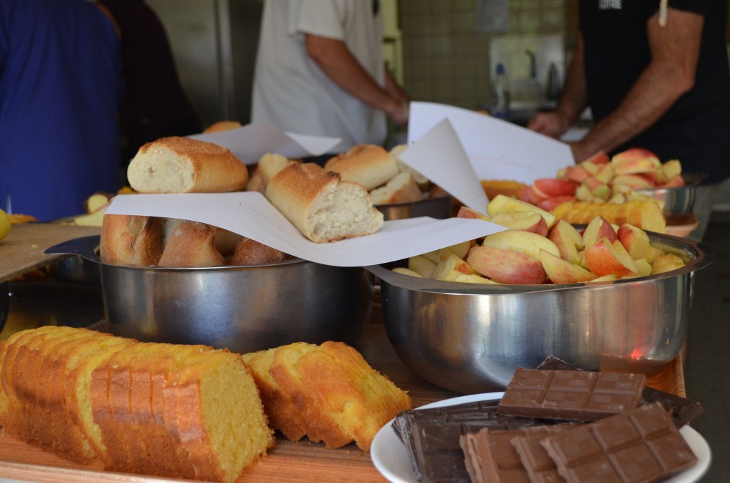 16h : Tout est installé. C’est l’heure du goûter préparé par la maîtrise de groupe et les parents bénévoles. Pain, tablettes de chocolat, quartiers de pommes et grenadine pour aller avec tout ça. Miam !