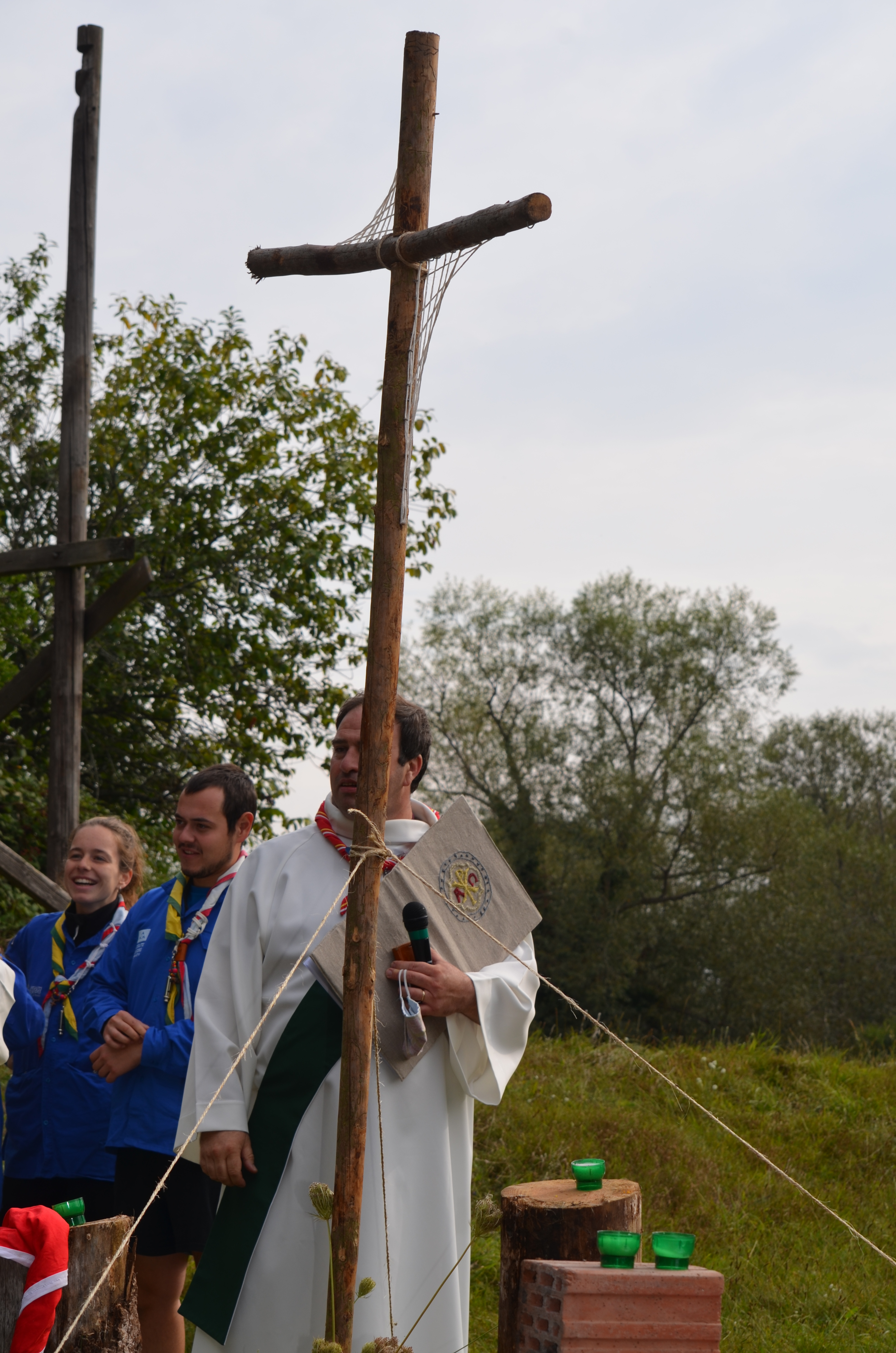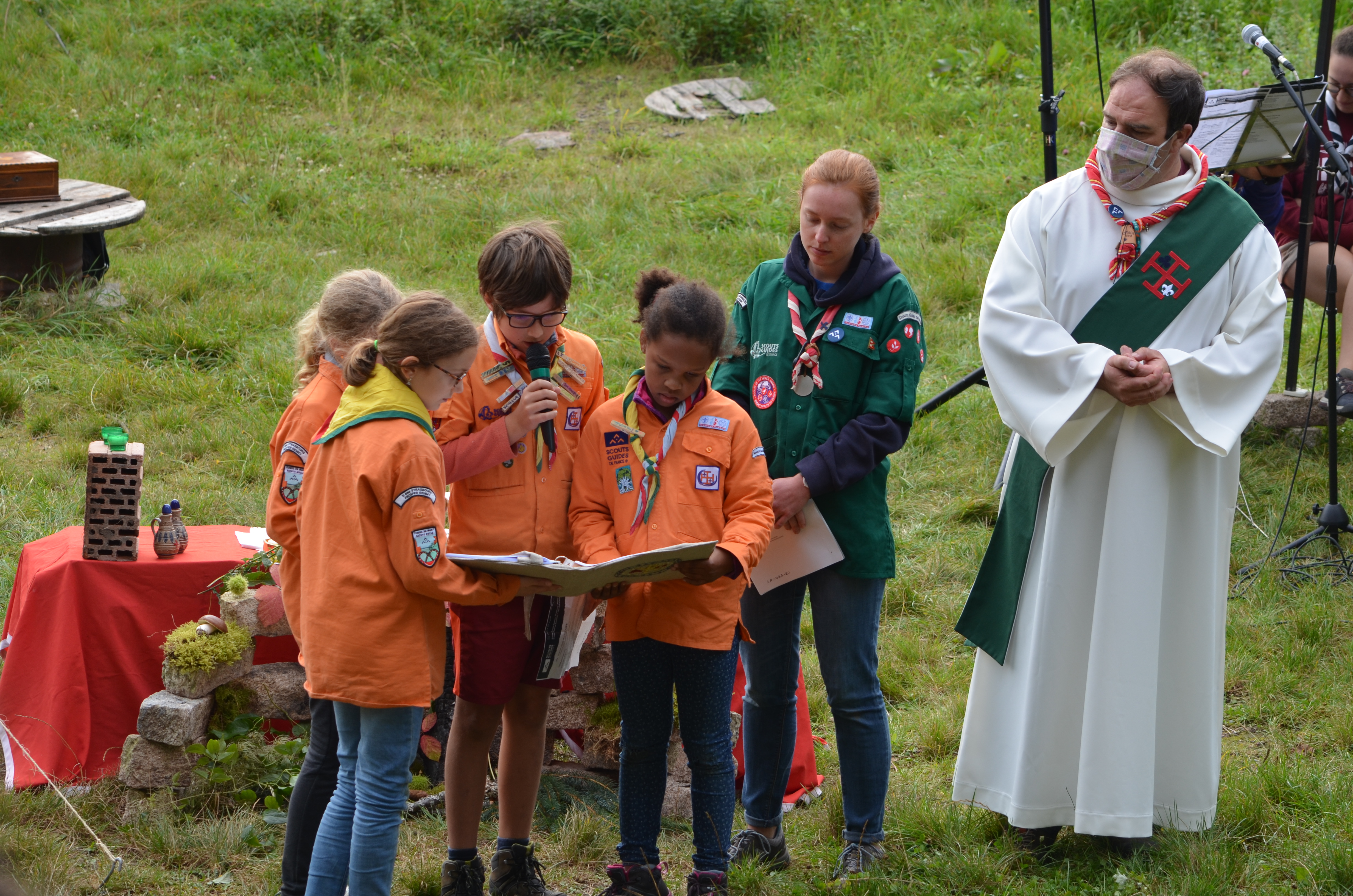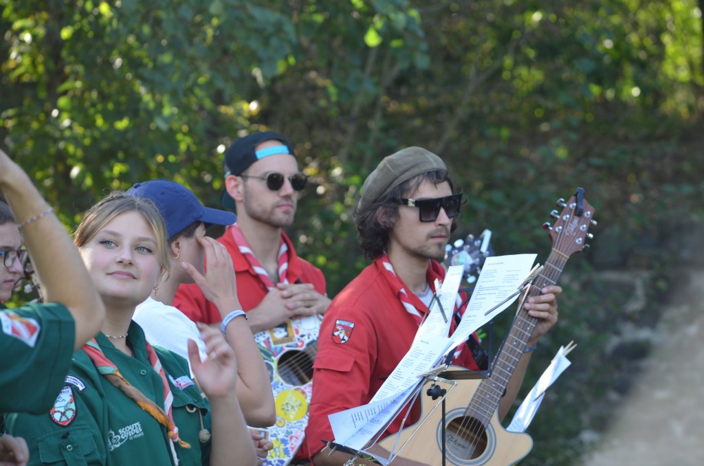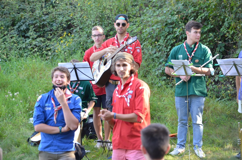 11h, c’est l’heure de la messe en plein air avec le groupe de la Meinau également en weekend. Officiée par le prêtre de la Meinau avec l’appui de notre diacre Jean-Claude, et animée par les Musi Scouts, c’est un moment très fort de partage.