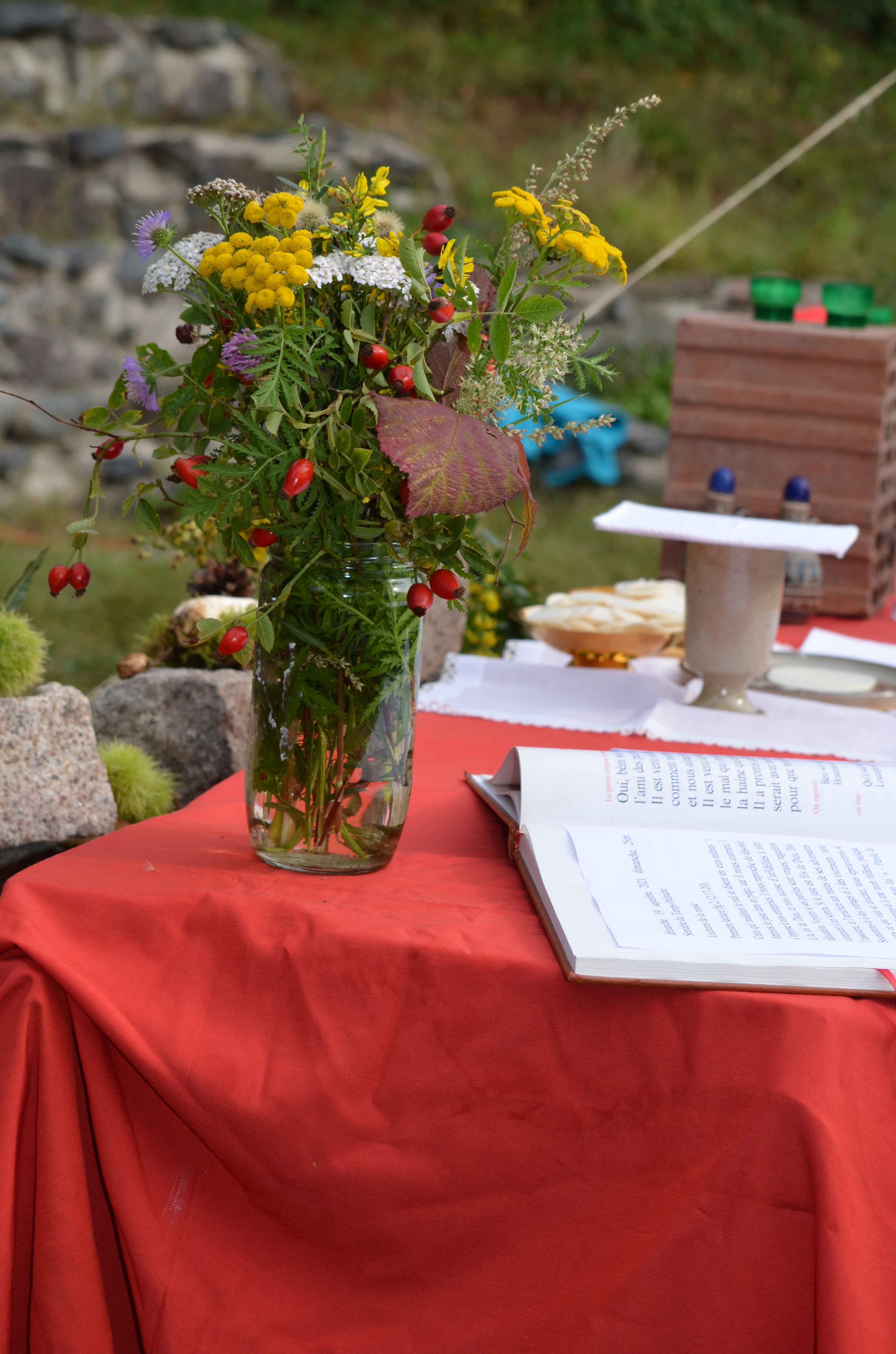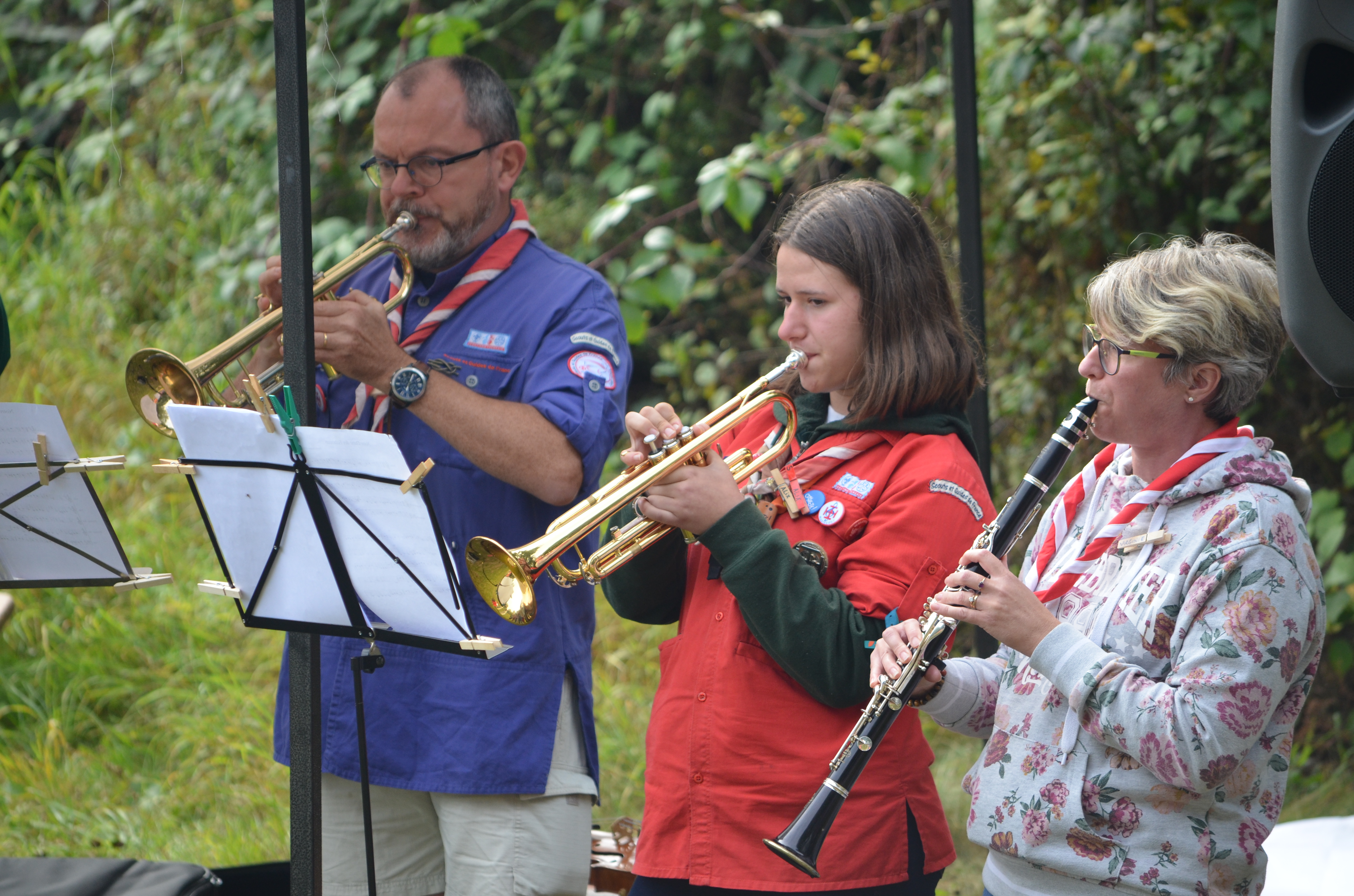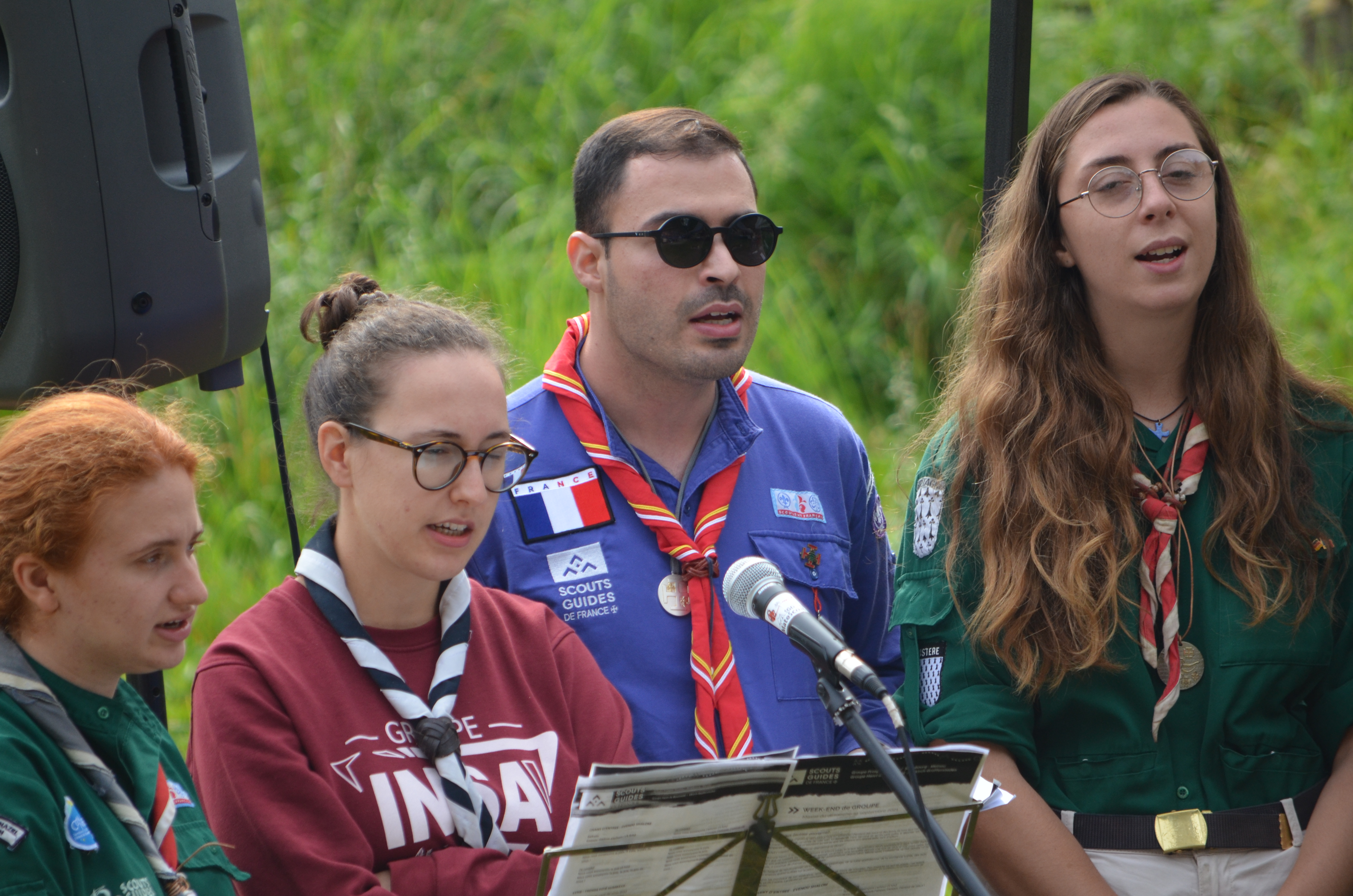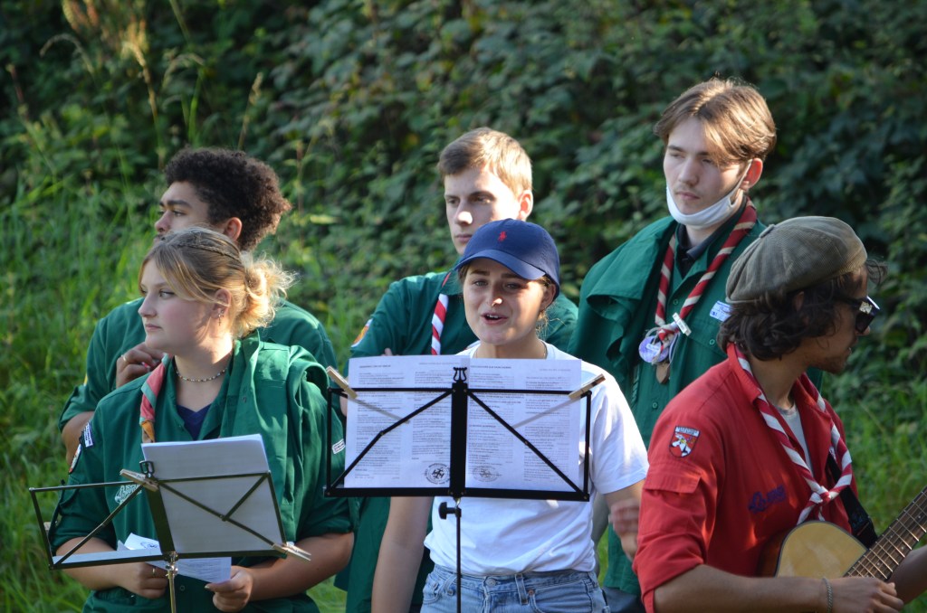 11h, c’est l’heure de la messe en plein air avec le groupe de la Meinau également en weekend. Officiée par le prêtre de la Meinau avec l’appui de notre diacre Jean-Claude, et animée par les Musi Scouts, c’est un moment très fort de partage.