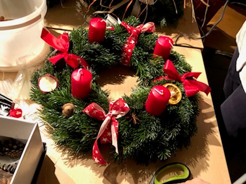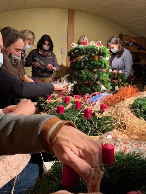 Les parents volontaires se sont retrouvés pour réaliser les couronnes de l’Avent. Le choix de la musique de Noël ne fut pas facile mais pour la décoration chacun a laissé parler sa créativité. Au final, dans une ambiance appliquée mais aussi très conviviale, une centaine de couronnes ont été réalisées. Il y en a pour tous les goûts.