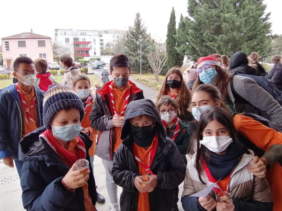 Un peu écourtée pour cause de crise sanitaire, les scouts ont tout de même pu participer à la distribution de repas de Noël de l’association Caritas. Autour d’un brasero réalisé par leurs soins, ils ont réchauffé les cœurs par leurs chants.