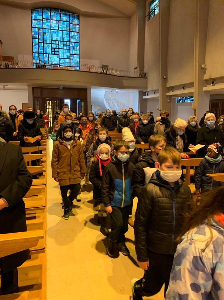Quelques courageux se sont rendus à l’Eglise Saint Pierre le Vieux de Strasbourg pour une belle cérémonie matinale de remise de la lumière de la paix de Bethléem. De quoi être prêts pour la distribuer aux Illkirchois lors de la messe de 11h à Notre Dame de la Paix. Allumée dans la grotte de la nativité à Bethléem, la lumière est rapportée en Autriche puis transmise partout en Europe . C’est un symbole d’espoir à l’échelle locale et mondiale.